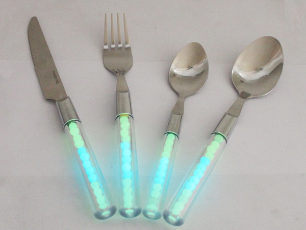 專利號:201020213442.1 一種含有夜光珠手柄 專利號:201020542732.0 此匙柄內裝神奇感光條/粒,能吸收光線,于夜間(或暗處)發出光芒。匙柄放置于日常光照下半個小時再移至暗處,能發光達6-8小時。夜間使用前將其放置于白熾燈或強光下吸收光線約5-10分鐘,則發光更明亮、持續時間更長。 匙柄內的感光條/粒在正常使用及保護下壽命可達3年以上。另有多種色彩匙柄可供選擇,讓夜晚更絢麗多彩。